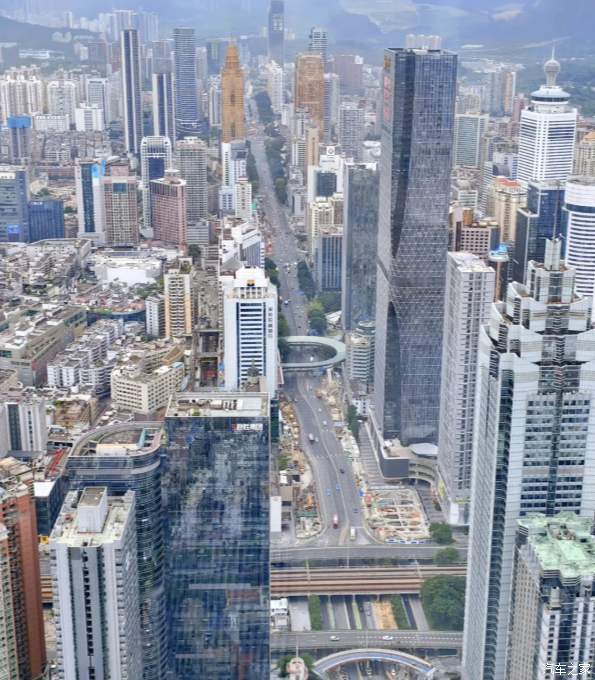 一大早,我们便起床洗漱收好东西,把行李箱拖到后备箱去,今天我们要去地王大厦,我们一路兴奋的哼着歌就驱车前往。地王大厦是深圳的著名景点之一,据说地王大厦于1996年3月竣工,是深圳特区20世纪90年代中期耸立起来的一座重要标志性建筑,也是当时中国最高的建筑物。“地王”之名,来源于其得天独厚的地理位置:该地段处于深圳深南东路、宝安南路与解放中路交汇的黄金三角地带,被地产界誉为投资的地中之王。高69层,总高度383.95米,实高324.8米。2018年11月24日,深圳地王大厦入选第三批中国“20世纪建筑遗产项目”名录。我们买了观光门票,就一路坐电梯到53楼,只要79元就可以俯瞰深圳,此时会有种会当凌绝顶,一览众山小的感觉。