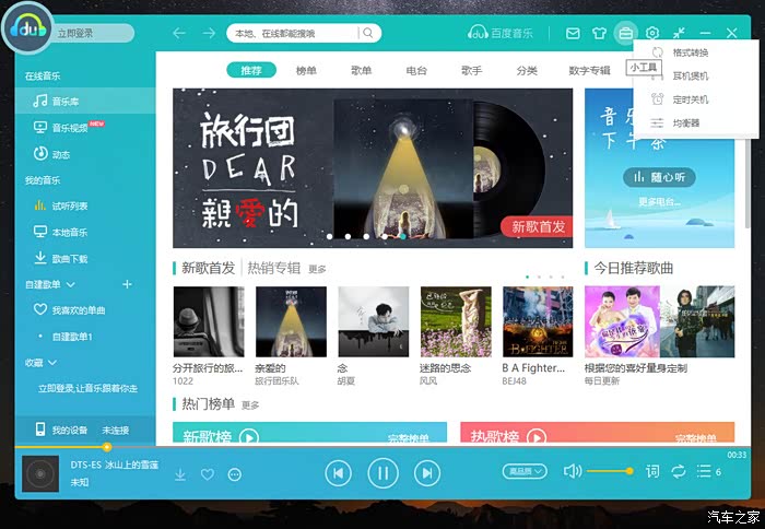 点击百度音乐顶部右端的小工具——格式转换