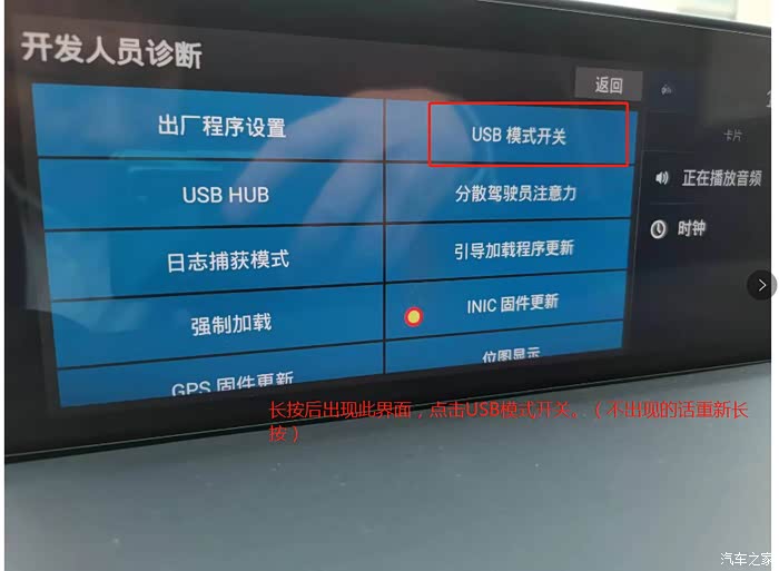 第二步,车机屏幕点亮,长按触摸板上面的3个按键大约5-10秒 出来经销商诊断模式,我们点击最后一个详细信息和设置。进去以后出来一个蓝色的界面详细信息和设置。这时候我们再长按触摸的板的3个按键大约10秒(不成功松了重新按)进入了另外一个蓝色的界面,这时候有USB模式开关(ADB和卡铺雷)这就是RDX的开发者模式。我们选择ADB模式。我们点击返回。车机界面一直返回到正常开机界面。这时候电脑打开91手机助手,自动识别并且安装驱动(建议电脑关闭360杀毒)如果识别不成功重新安装91助手,重新拔插数据线。识别后车机屏幕上会出现是否允许电脑调试车机,我们点击允许。