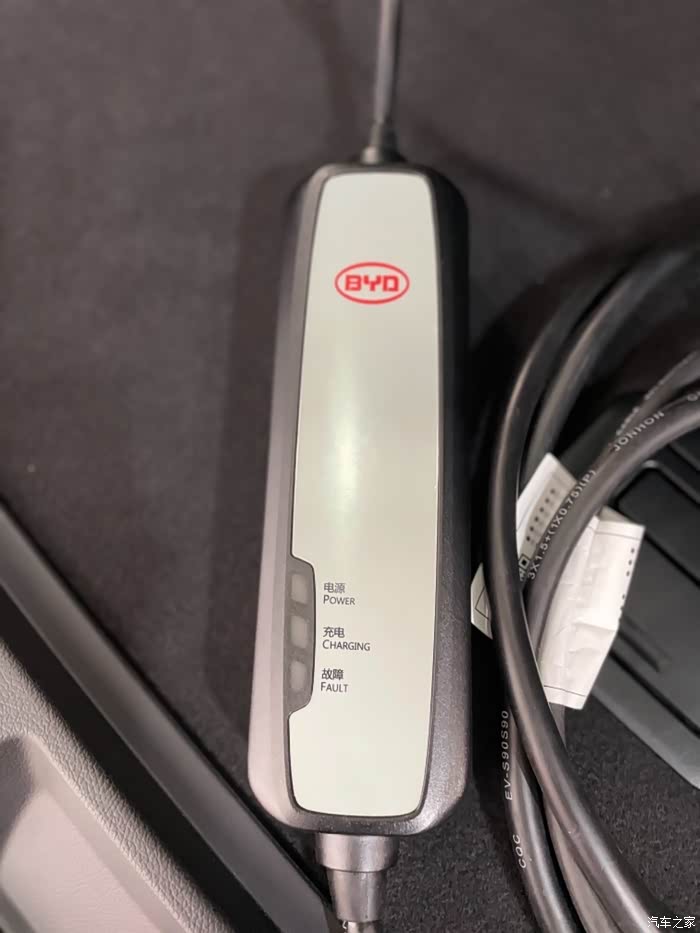 打开后备箱空间也是很大的而且我发现这个车的充电器和比亚迪其他的有些区别,不信你看下面