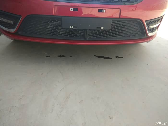 第三天,发现车前地面上不是水迹,是红色的油,就跟冷却液一个颜色。