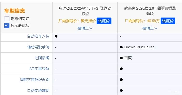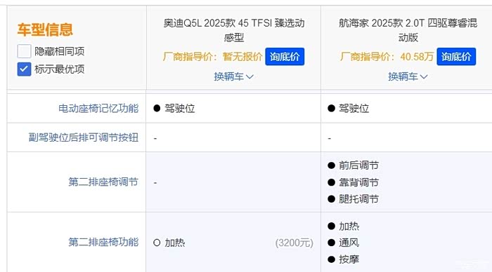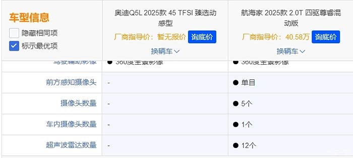 前关注的是尊睿混动和Q5L的四驱顶配,感觉航海家混动的中配还要比奥迪顶配的配置还要高一点。