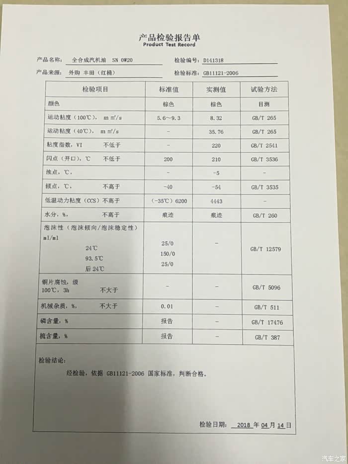 ,之前测试了丰田紫桶,这次测一下进口丰田原厂红桶,同样020的,听说是美孚代工。看看她的指标是不是更好