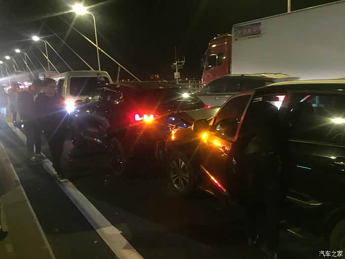 案件经过:路虎女司机在超车道无故急刹;第二辆长安小面包追尾;第三辆刚从盐城提车往上海的VV7刹住了;第四辆奇瑞瑞虎由于跟车距离近,大半个前脸报废;