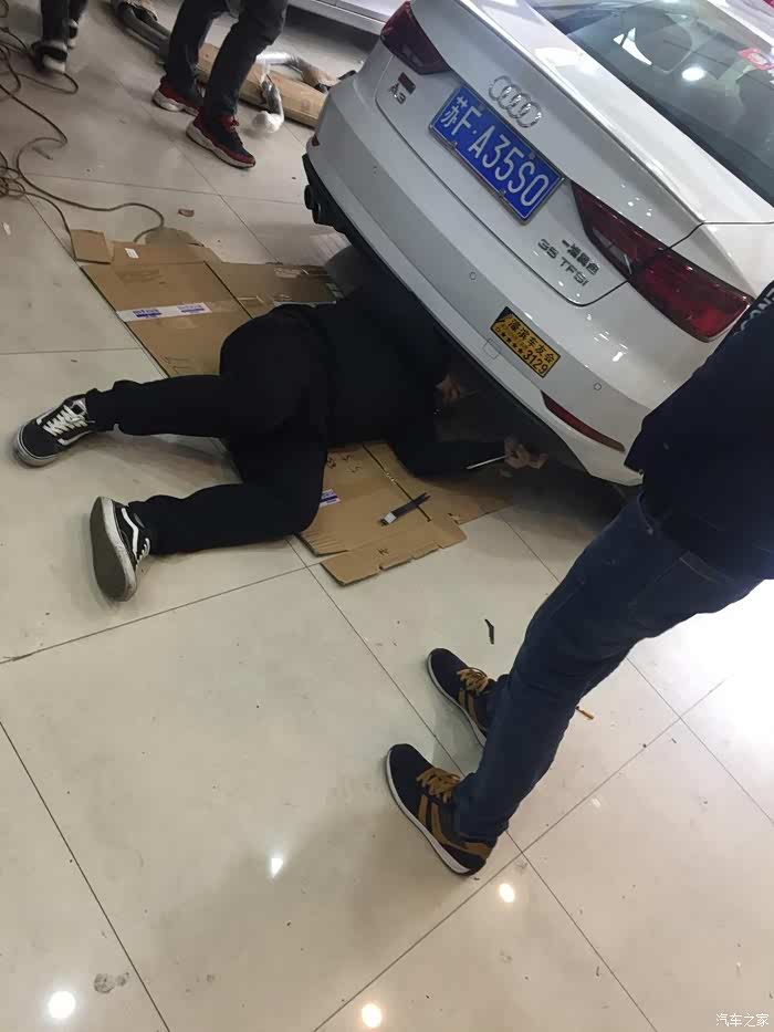 原车后杠拆除。S3四出后杠上架。再次画个重点,这德系车的拼装工艺真不是盖的,两个小伙花了将近半小时才将后唇拆装好,那卡扣真叫一个严丝合缝。