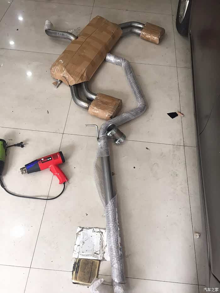 排气卸任,原车排气中段是有消音的,而且原车中尾段是一个整体。