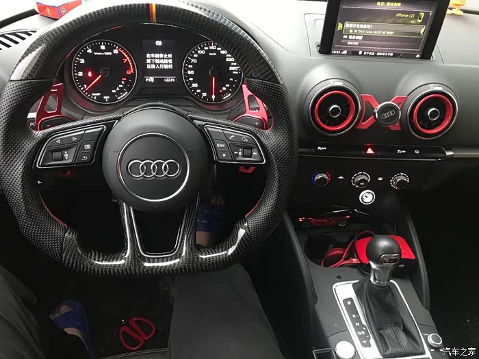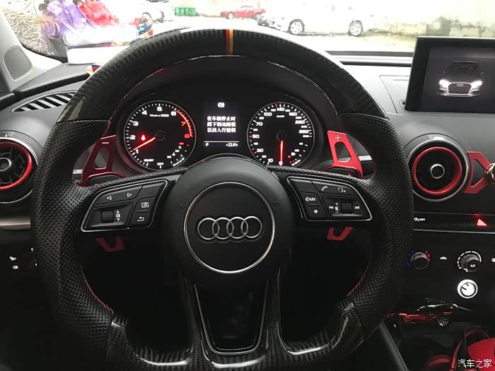 。总体来说,S3排气起步低扭基本无损失无共振,3000转以上声浪凸显,上了高速动静小(120码转速2500左右),是我想要的效果。二更【碳纤维方向盘+换挡拨片】