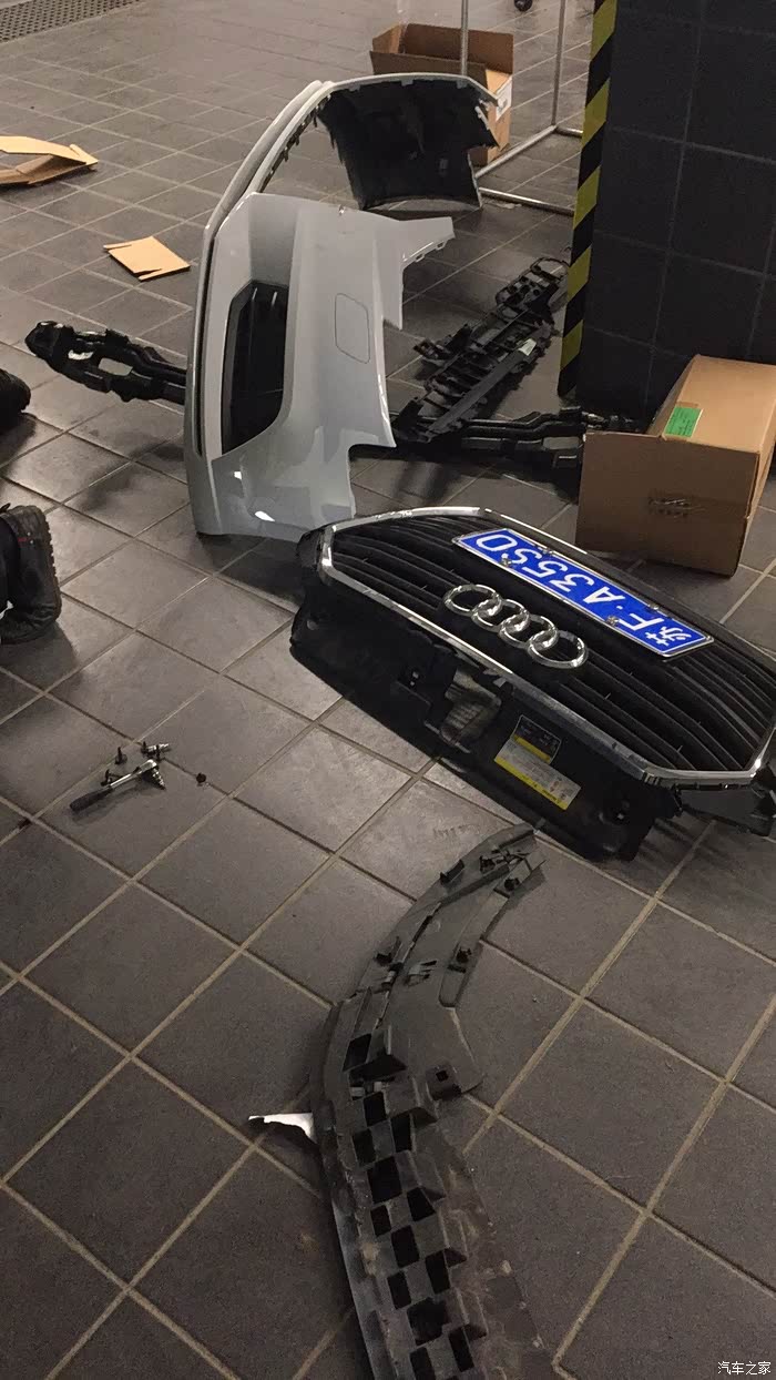 由于前杠部分刮伤,中网条断裂几根,在定损后,4S问我是否需要更换,刚好也有换S3套件的打算,遂订货。