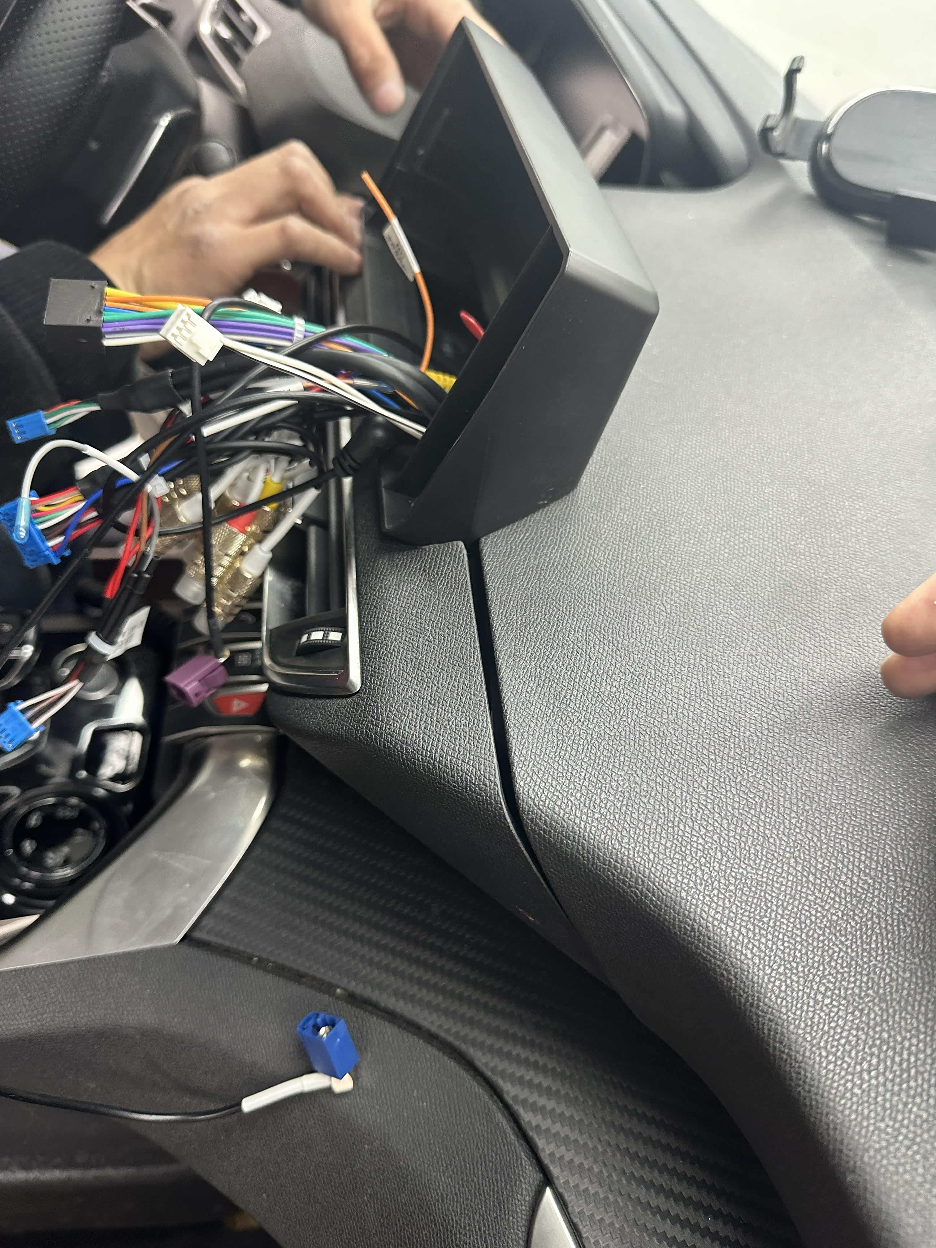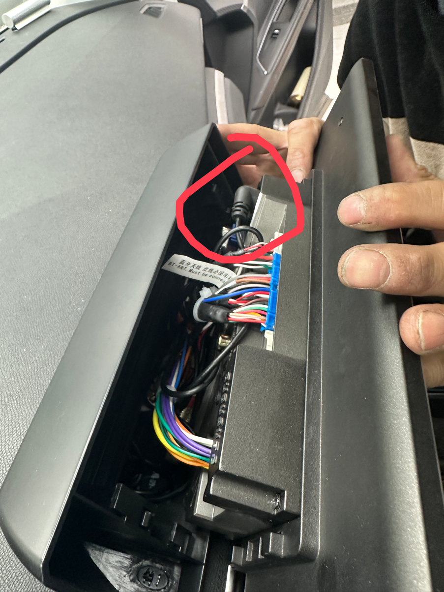 将大屏的线材穿进去,u***、gps、4G的线穿到副驾手套箱,其他的直接穿到档把下,连接协议盒,无损对插原车接头。