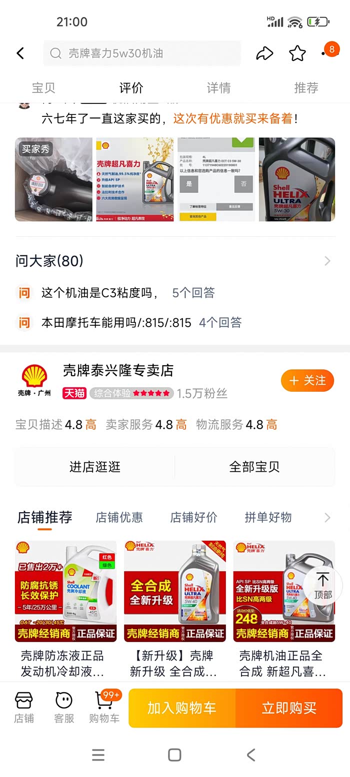 壳牌泰兴隆专卖店和壳牌天猫官方旗舰店哪个保真,泰兴隆的价位是真优惠,哈哈😃