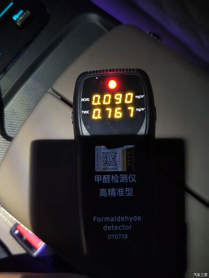 今晚拿甲醛测试仪测试结果是0.09,国家标准是0.08,不过是下午6点停到晚上10点测的,估计白天太阳暴晒后会高很多,所以上车先开外循环很重要,最好一直开着外循环,但是这个自动内循环就很头疼😣😣😣
