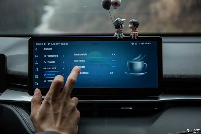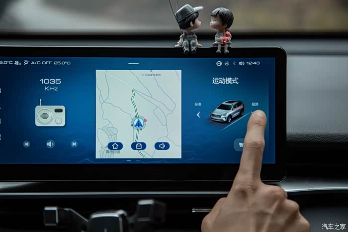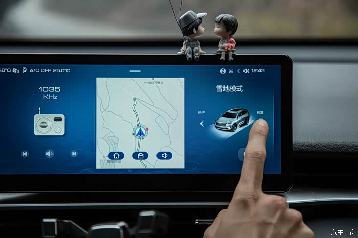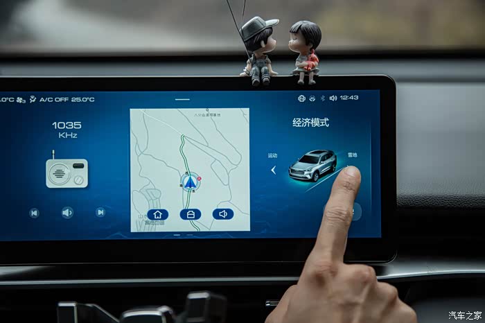 液晶触摸中控屏幕,反应很灵敏,不过我建议不要拿手指直接在上面操控(除非你很着急)否则虽然手指操控比语音操控来得更直接,但是会在这块娇气的液晶屏上留下你的指纹,亲测很难打理干净。