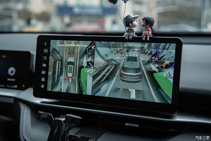等红绿灯的时候由于周围的车和人一下子变多了,所以H6自动唤醒了360全息影像功能,不一会儿车子四周的情况就都尽收眼底了,而且很高清,安全问题不容一点马虎。
