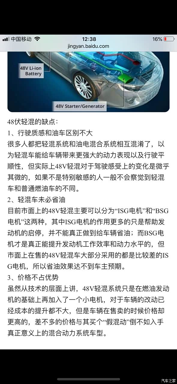 当然也有朋友车友会说,22年销售昂科威是有48v 轻混系统的。这里也说明下我多方面多渠道了解到的信息,别克的轻混系统是为了通过我们国六 B 排放标准而设定上去的,对于油耗的节能表现非常有限,毕竟它是 bsg(皮带)工作原理的48v轻混。