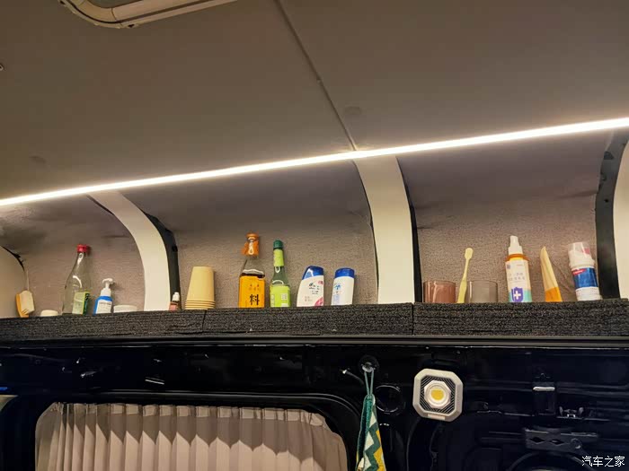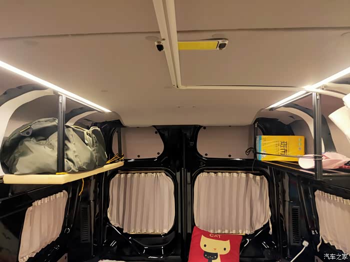 床两边做了一个铝架子可以放很多衣物,在车内可以随时拿取,实际用起来非常实用