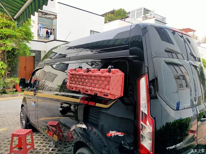出发前准备了脱困板和猴爬杆,后来高速上这样挂不稳所以还是放车内了