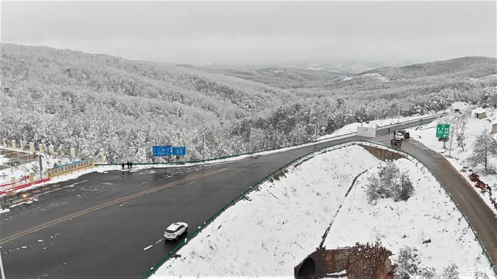 大坝拍摄完了之后,跑到一个高速路口去拍“千里冰封,万里雪飘”景色。