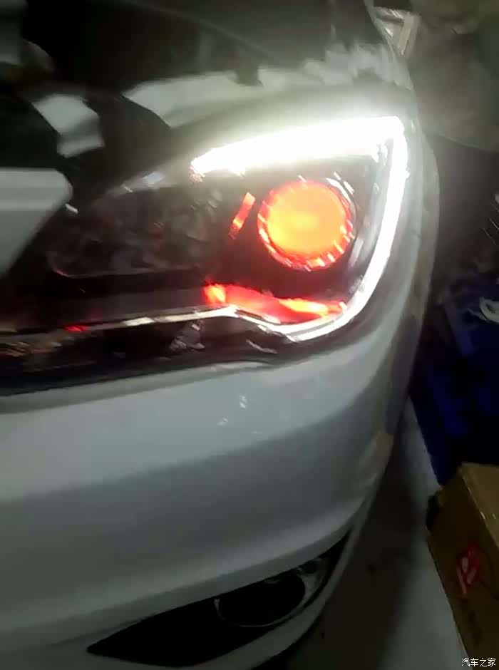 大灯总成换双光透镜相当给力,澳滋姆(杜柯玛)蓝膜高清海拉5双光透镜,澳滋姆55W快启安定(白色),汉雷三代45W5800k氙气,澳滋姆360度恶魔眼。花费:1500元。远光换的普通带风扇C6型号LED 6000K(为了超车和提示闪光用)花费:60元。改后实现两近光四远光