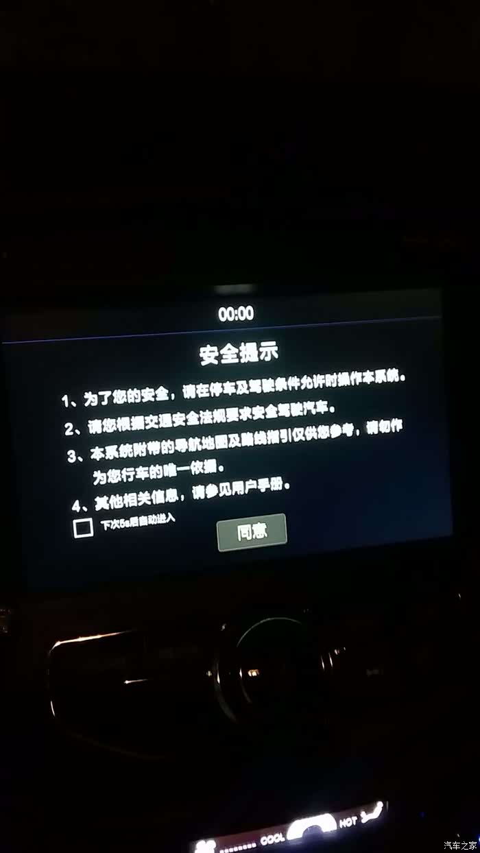 2、现在回到你的车上,打开车机,点击同意,进入主界面,插入U盘,等待U盘自动识别