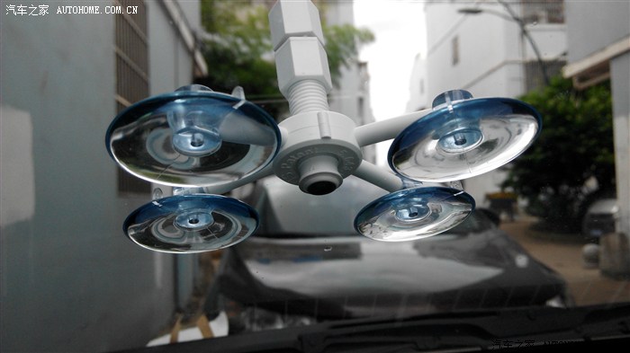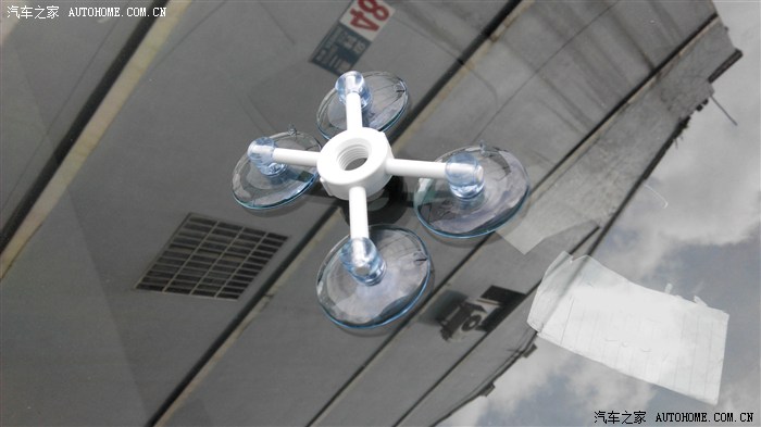 第一步,车停在阴凉处,清洁玻璃后先用固定架把中心点对准撞击部分,四只吸盘固定牢。