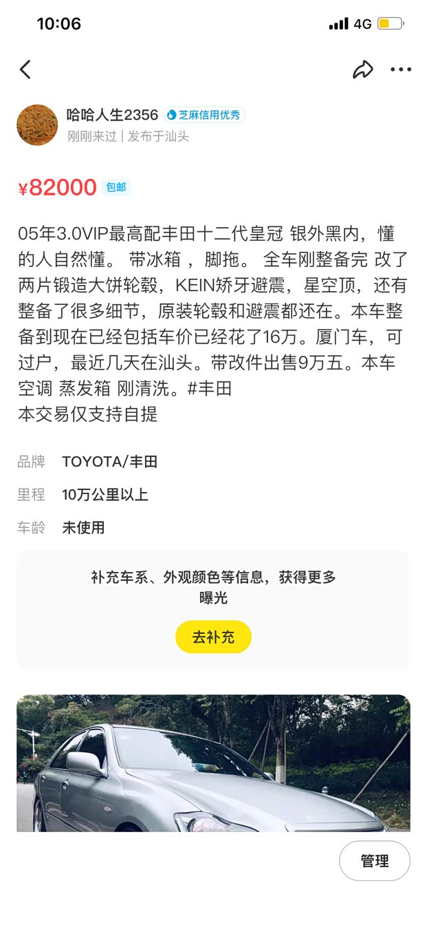 广东个人出一台十二代丰田皇冠,05年沙龙版,银外黑内,目前轮毂已复原,改装件可以附赠,改了星空顶,全车油水,空调蒸发机全部刚清洗,如果有爽快的可以便宜卖,本人已买新车