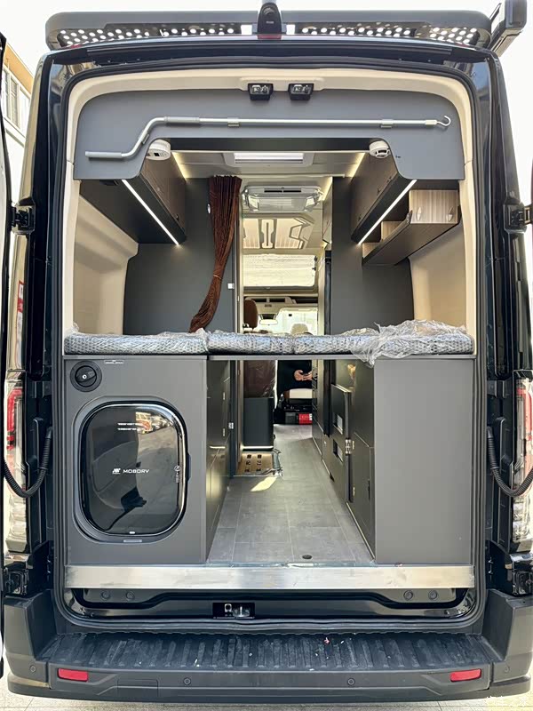 水电配置是旅居生活的重要保障,该车表现同样出色。配备48V 200Ah锂电池(约10度电),搭配5kW高频逆变器以及新能源充电接口,支持快充技术,2小时内可充满,为车内各种电器设备提供稳定电力,满足日常用电需求,即使在野外也能保证电器正常使用。电池还带低温加热功能,寒冷环境下也能正常工作,让旅途不受天气限制。水箱方面,标配100L清水箱、70L灰水箱与50L黑水箱,充足的储水量能够满足旅途中的日常洗漱、烹饪和清洁等用水需求,无需为水电问题担忧。此外,车辆还配备进口2KW燃油暖风机(含高原模式)和48V定制变频空调等设备,无论是寒冷冬季还是炎热夏季,都能为乘客提供舒适的车内温度,让车内四季如春 。