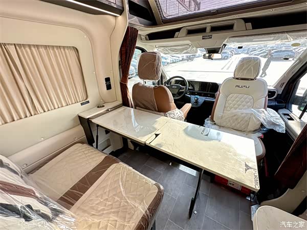 会客区采用单排双人卡座设计,看似简约却暗藏巧思。座椅支持侧向抽拉与多项调节,无论是想要放松休息,还是专注欣赏窗外风景,都能轻松找到舒适坐姿,长时间乘坐也不会感到不适。前方可折叠、拉伸的多功能餐桌,满足用餐、娱乐、办公等多种需求。侧面大尺寸横移窗行车时可打开通风换气,顶部进口定制可开启全景天窗,夜晚躺在床上就能仰望星空,享受浪漫旅居时光,为旅途增添难忘回忆。