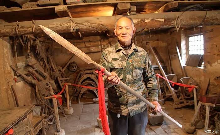 2006年自己便萌发了保护的念头,随后开始收集收藏当地各种的生产生活用品,10多年来满满地放了3大窑,并且按照类别进行摆放,集中收藏。大叔说其实将当地的黄河农耕文化保护起来也有一个重要的原因就是防流失,前些年村子里青壮年劳力外出,古村落在当地名很大,就被一些个别有用心的人盯上了,被盗了好多的石雕,砖雕和木雕作品,后来他和几个老伙计商量着自发组织起来保护家园,甚至还抓住了几个盗贼送交了当地公安机关进行处理。图为老人展示他收藏的民国时期本村人使用过的长矛,他说当年先人们用长矛是为了防“刀客”,如今它已经成了收藏