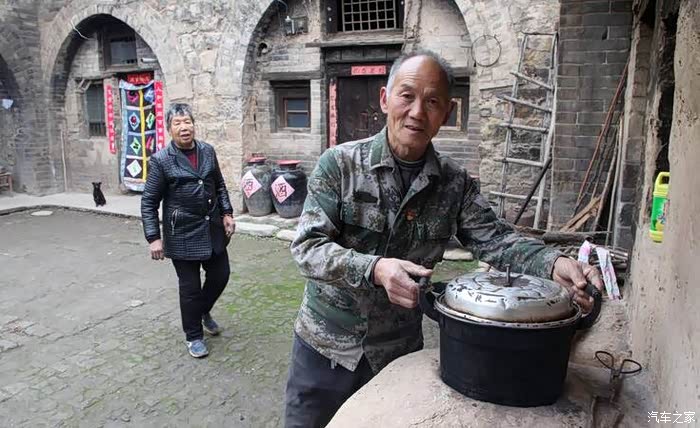 郭大叔说他的名字叫当家,今年整整70岁了,人和他的名字一样当了一辈子的家,直白地说就是在黄河边上下了一辈子的苦,他有2个儿子现在都生活在市区,家里的老宅了就是他和老伴在看守,看上去大妈的腿脚不是太好,郭大叔接过老伴手上的铝锅放在了院子的土灶台上,要给大家烧水做饭吃,山里人的热情好客便从吃喝开始了,我们谢过老人的好意便开始听他介绍自家的老宅院。