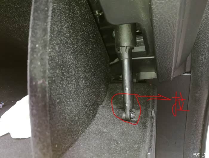 1:打开副驾驶前的手套箱,把右侧的支撑杆退出