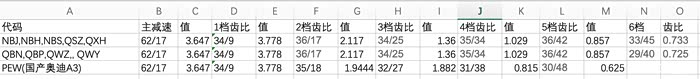 而最适合的MQB平台1.4T的变速箱编码为NBJ,NBH,NBS, QSZ,QXH,QVX,PTW,RSD,RSW,零部件02S打头,以及部分变速箱编码的齿比,大家可以在购买变速箱的时候有个比对。
