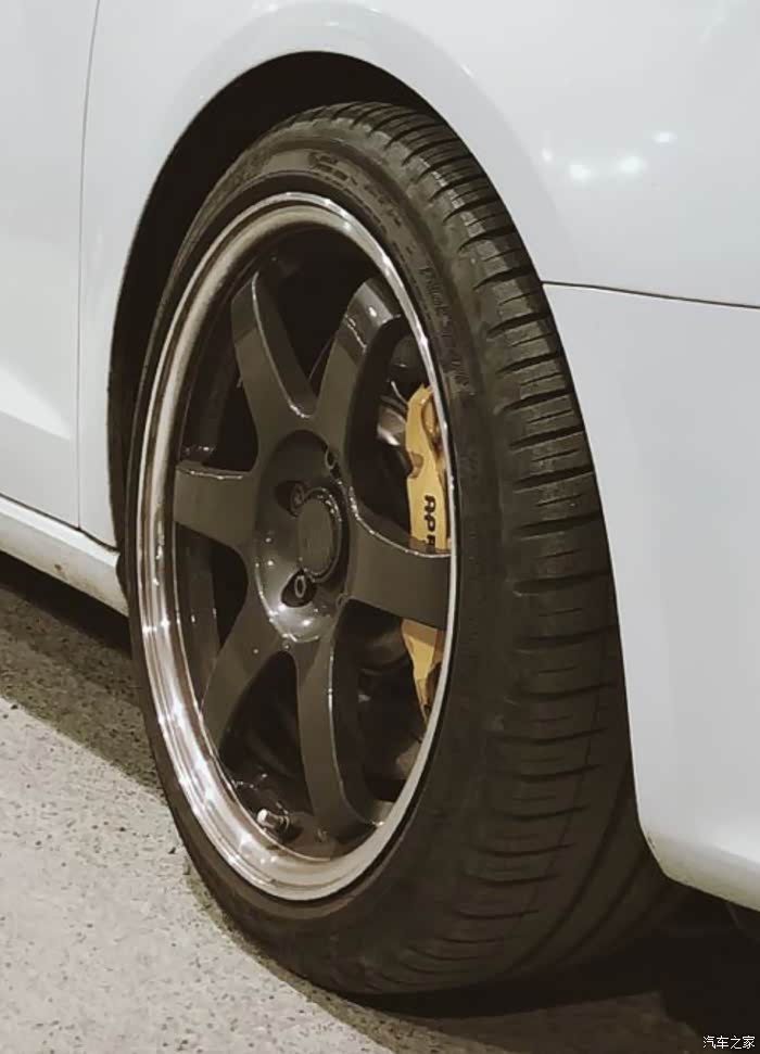 三万公里左右更换AP5000+六活塞刹车,价格小贵,算是最满意的一个改装件,所有的朋友看到我的小六AP加355刹车盘,都以为我动力起码到了200P,其实没有,依旧原车。平时在合理路况下喜欢开快车,原厂刹车大家都在说如果不改动力是够用的,或者换套刹车皮就行了,我不这么认为,尤其在开过原厂刹车改刹车皮之后。