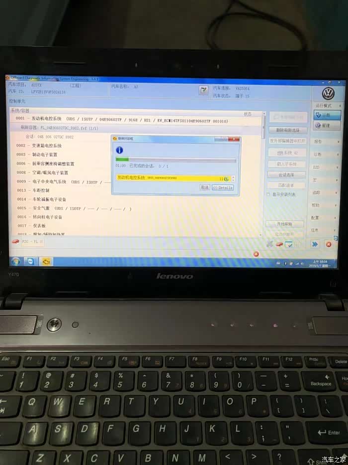 在这个过程还是非常忐忑的,因为有各种声音表示,可能会把电脑刷废,也有声音说可能刷进去后需要重新解码防盗,总之非常麻烦。外地朋友连好远程,一顿猛操作之后,开始选择固件上传,我心又一次提到嗓子眼,开始故作镇定的跟朋友聊天,结果我还没想好说什么,电脑就提示上传成功了,我赶紧跑过去看了下仪表台,防盗没有开启,证明无需做防盗匹配,太好了。接下来接5053开始编码,选择发动机编码,变速箱,6速手动,然后保存开始等待,叮一声显示保存成功,我去,成功来的有点突然,我都忘记了呐喊了。
