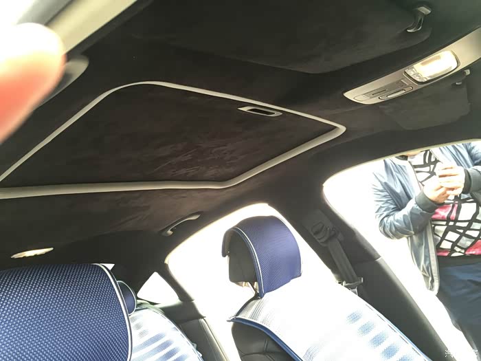 车顶包了黑色翻毛皮顶 提升档次 装X用。