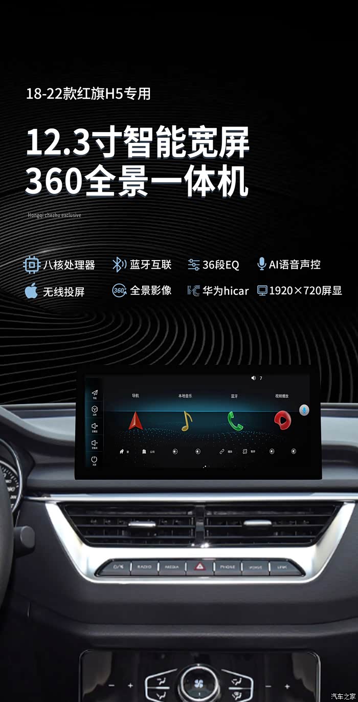 红旗H5专用中控智能屏,语音声控支持原车按键操作及Apple 无线手机投屏,4G全网通支持各运营商,标配1080P高清后视通道,可选360全景一体机配置,8?128G运存行业内顶配运行流畅不卡顿