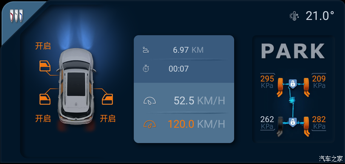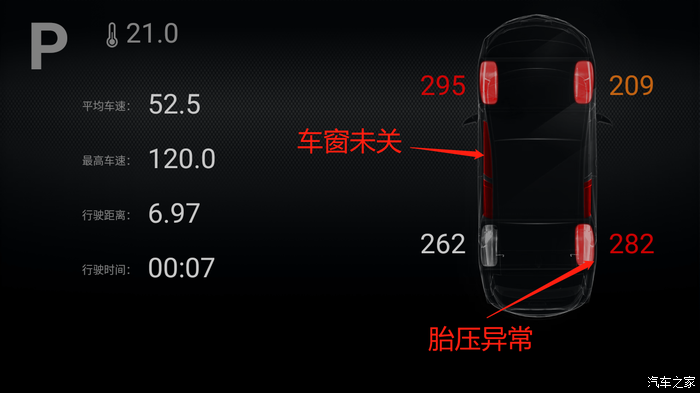 显示驻车数据的主题,当车辆档位在P档时,会自动切换到此界面。