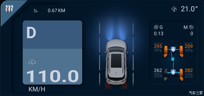 显示行车数据的主题,当车辆档位在D/N时,会自动切换到此界面。