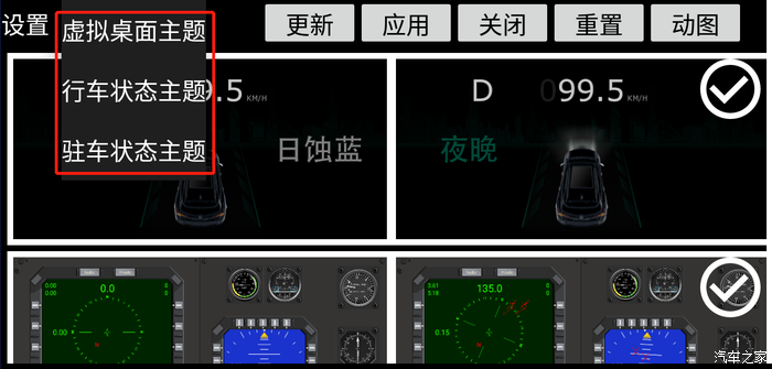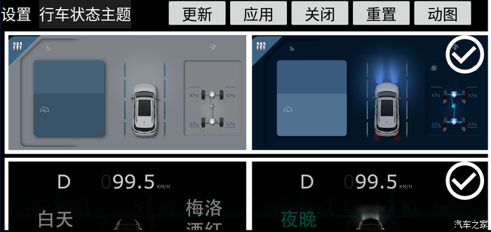 PS: 行车主题与驻车主题,无法手动切换,完全根据档位状态自动切换。