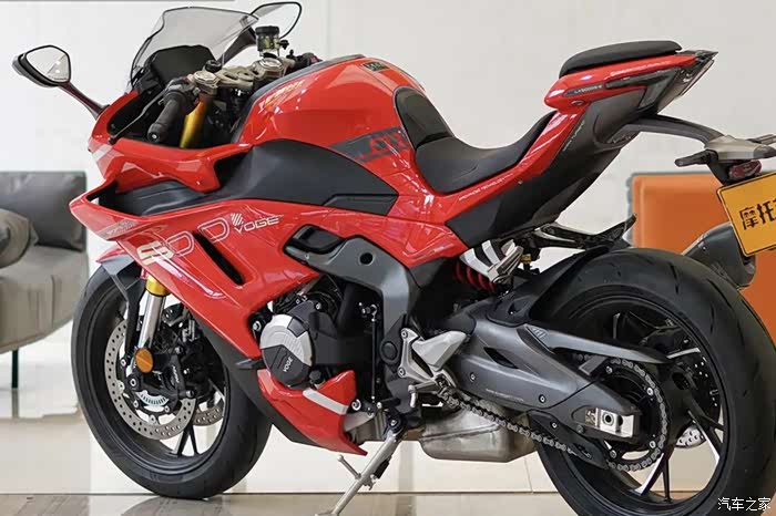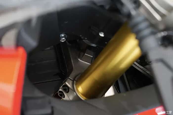 配置方面搭载全彩TFT互联液晶仪表、前后日清卡钳、直推上泵、冲压进气、胎压监测、双通道ABS、TCS牵引力等。减震方面也是金色倒立式前减与中置后减震多段可调的组合,整体的配置表现完全符合这一级别该有的水平,而且无极同样为这台车加入了电动排气阀门系统。