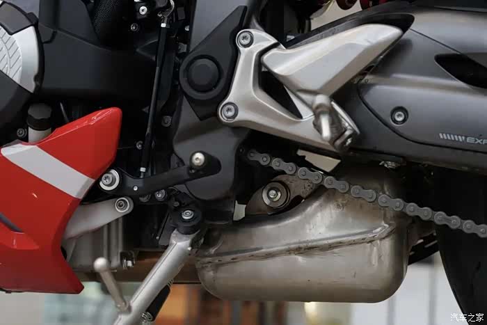 此外,值得说道的还有这台RR500S在做工上的明显提升,就拿无极同级RR525相比那真的完全不是一个层次的细节表现。从下面的实拍细节图我们可以看到,不论是上下三星台、铝合金后脚踏、油箱盖、手把按键、牌照支架、铝合金后摇臂、整车贴纸等细节都有非常出色的表现。甚至可以说这台车已经拥有大贸车型的那种质感,看得到或看不到的地方都很用心在做,这一点对于一台车来说真的是称不称心最好的表现。