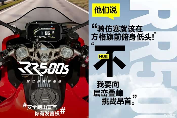 无极连续两天预热中量级四缸仿赛,而这台曝光已经快一年的RR500S连续两天预热也预示着上市不远了。不过从官方的预热中我们似乎能够感受到不一样的风格,所有厂家都在宣传自家仿赛极速有多快,性能有多强的时候无极似乎是要反其道而行之。或许这一次无极的思路是对的,试问买仿赛的车友有几个天天下赛道,有几个天天趴着骑呢?