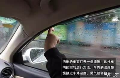 平常的做法就是打开车内的风扇和制冷开关,这样冷气吹到玻璃上很快雾气就会一散而尽,效果很快很直接。这是因为冷气吹到玻璃上,阻止水气在玻璃上凝聚,起到除雾效果。这个方法有一个最大的弊病,就是车内的人可能会感到很冷,试想在容易出现雾气的雨天和冬天,在车内吹冷气的滋味真的不好受!吹几分钟可能就会关掉冷气,不一会雾气又开始挂在玻璃上,又开冷气……这样反反复复的操作不方便而且车内温度会很不适宜,另外低头操作对安全造成了一定得隐患。当然,如果您身体很强壮或者刚进行完激烈的运动,这种方法也凑活可以用。
