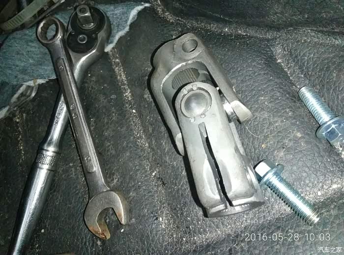 好了,现在开始安装了,先把助力方向机四颗螺丝固定(只是固定不要装紧)