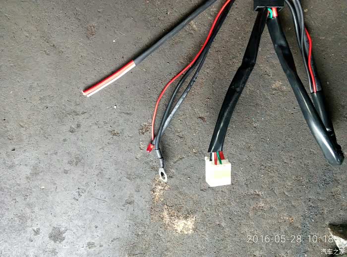 控制盒线束,白色插头插在控制盒里,红色粗的那条是正极,旁边白色是接ACC,红色细接米表信号线