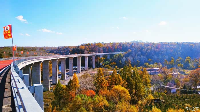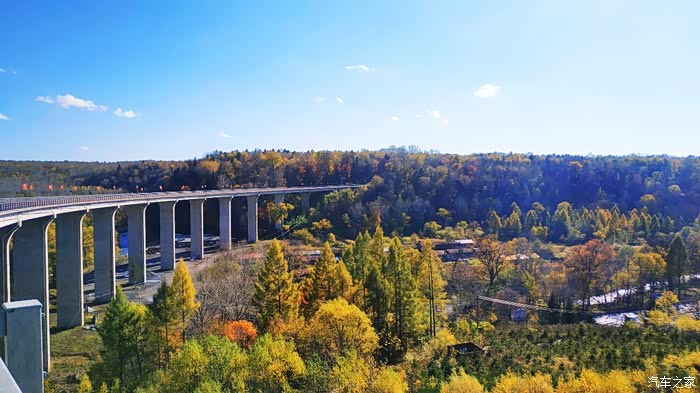 这是长白山环山路45km处的一座高架桥,位于松江河林业局前川林场,俗称 前川大桥,官方称为长白山大桥,是长白山北西之间的一大景观,远处隐约可见长白山雪峰。