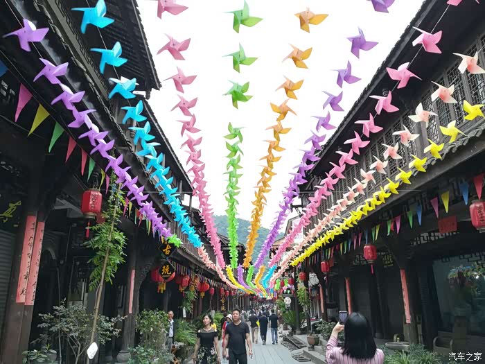 街子古镇有点委屈媛媛了,景区人多,车不能进古镇,默默地待在一角