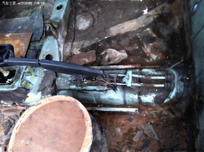 大家可以看到手刹后面的两根铁管线,这就是调节手刹用的。