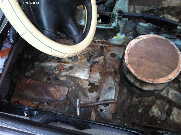 修理铺老板亲戚的极品捷达,04年的车,底盘已经锈穿,在这里搞冷作焊接。