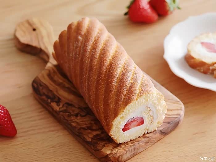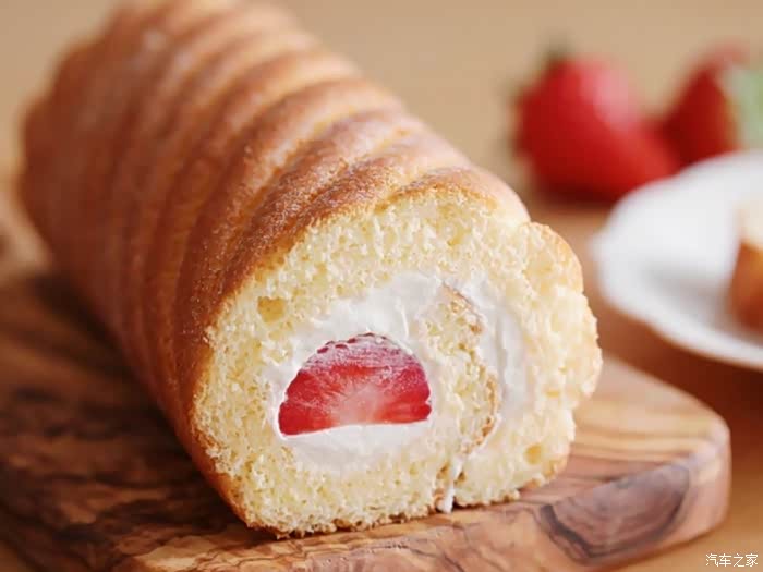 蛋黄打散,加入细砂糖A搅拌均匀后隔热水继续搅拌,直至蛋黄温度上升到38度后从热水浴中离开。用电动打蛋器高速打发蛋黄,直到蛋黄变得浓稠出现纹路,打发到提起打蛋器后流下的蛋黄糊会在表面停留1-2秒后慢慢消失的状态即可。用刮刀整理均匀备用。蛋白中加入白醋,分三次加入细砂糖B打发到细腻有光泽有不会消失的纹路的状态,低速整理一分钟,提起打蛋器蛋白可以稳稳站立起来有小弯钩即可。蛋白倒入蛋黄糊中翻拌。彻底翻拌均匀。筛入低筋面粉。用画“の”的搅拌方向翻拌蛋糕糊,一直到看不见面粉颗粒最后蛋糕出现光泽感即可。(不要过度翻拌喔)裱花袋中装入1cm的圆形花嘴,再将蛋糕糊装入裱花袋中,斜着将蛋糕糊挤入烤盘中,注意每一条蛋糕糊都不要挤的太紧贴,刚刚好贴到上一条蛋糕糊的位置即可。(挤的太紧烤的时候纹路会挤没掉。)最后筛上厚厚的糖粉,一层不够就两层。放入预热好的烤箱中层上火170,下火150烤20分钟。(这个蛋糕比较薄,注意不要烤太久,用手指轻压表面有点干干的不粘手就差不多了)蛋糕烤好取出,撕掉四周油纸再在表面盖一张油纸放凉。放凉后切掉蛋糕片四周,将打发好的奶油抹上去,注意自己这边抹厚一点,尾端薄薄一层就可以了,摆上草莓卷起。用油纸包好,放冰箱冷藏2小时就可以切片吃了。