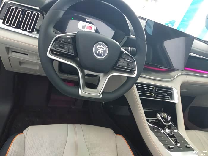 可旋转的大屏是比亚迪的一个特色,确实挺有意思,本身屏幕的显示效果很好,分辨率高,界面设计的也很漂亮,操作起来使用顺手。还有就是用料方面软包很多,随处都可以见到皮质用料。